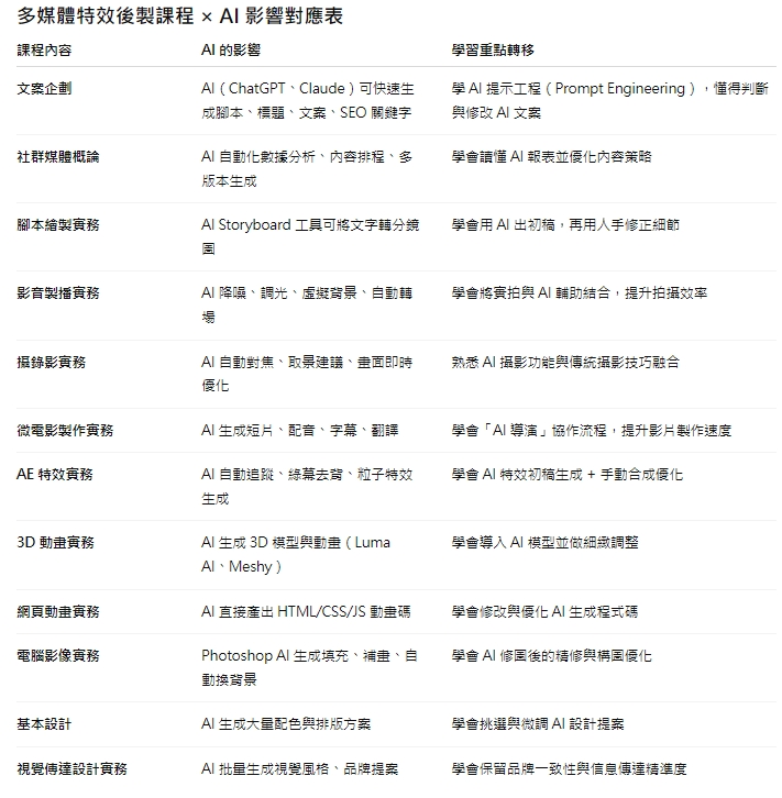 可開設的課程主題(例如:電腦基礎、多媒體製作、AI 應用等)